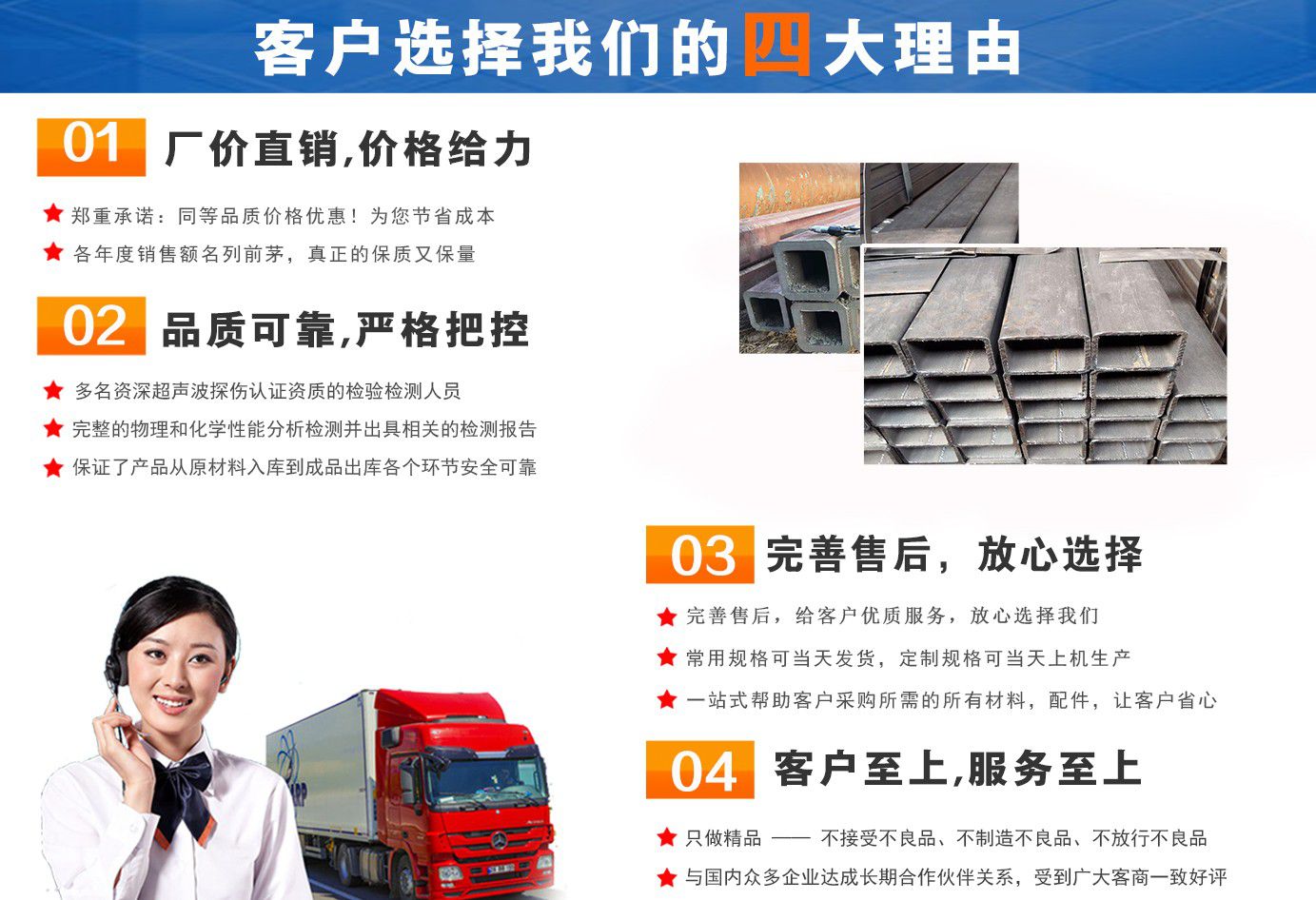 無錫盛灝特鋼有限公司長期銷售Q355B方矩管,鍍鋅方矩管,大口徑方矩管,厚壁方矩管,無縫方矩管等各種方管產品!產品廣泛應用于鋼結構建筑(鋼管混凝土、管樁、管桁架,橋梁、海上作業平臺、港口碼頭建設、電視通訊鐵塔、電力鐵塔等鋼結構管)。壓力管道(石油、天然氣、煤漿等輸送)、機械制輥等領域?! 」咀詣撧k以來,一直堅持“誠信合作,共同發展”的經營理念。  一直以來我們本著“以誠相待,以信為本,互利互惠,共同發展”的長期方針,充分發揮現貨資源優勢為您提供“可靠的產品、過硬的質量、完善的服務”,歡迎廣大新老客戶前來洽談業務?! 」疽浴爸琳\至信,雙利雙贏”為根本宗旨,堅持科技興企的發展策略,恪守商規,創新進去,贏得聲譽,贏得了市場,得到了社會各階層的認可。公司以雄厚的實力、可靠的質量、儲存鋼管門類齊全、庫存量大之優勢,本著守法、守信、創新的理念,打造精品,發展鋼管多元化品種,滿足客戶各種需求,以低廉的價格、熱情的服務面向國內外客戶,歡迎鋼管界同仁加盟!我們為客戶提供周到的服務 !  公司為客戶提供以下服務  服務三保: 保證質量、保證時間、保證數量。  服務宗旨: 雄厚的實力、優質的產品、低廉的價格、周到的服務。  批零兼營,一支起定。...